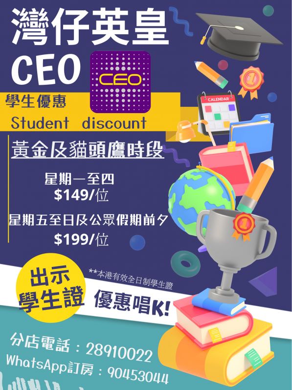 凡使用本港有效全日制學生證,在黃金及貓頭鷹時段享有特別優惠