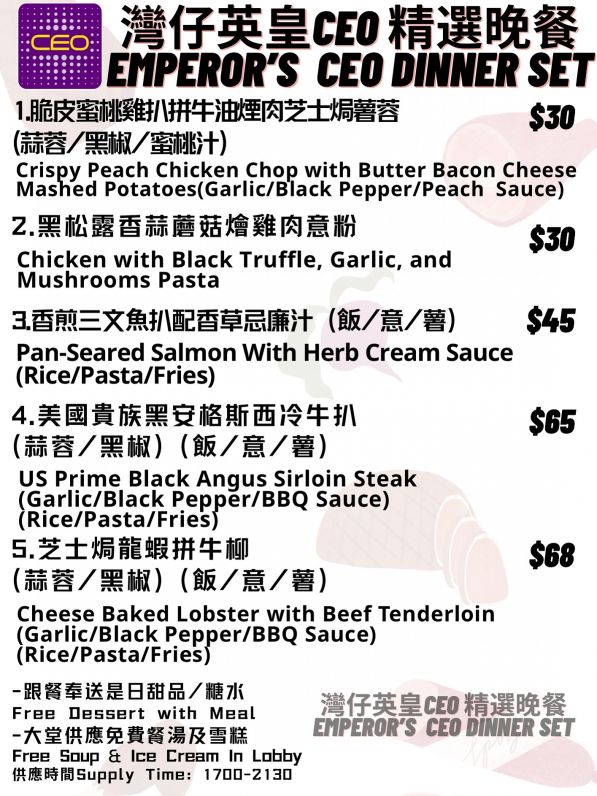 4. 美國貴族黑安格斯西冷扒 蒜蓉汁/黑椒汁 配飯/意/薯$65